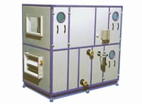 ZK系列组合式空调器,采用先j的生产技术,吸收了国内外空调器和装配式洁净室的优点,采用彩色镀锌钢板内夹自熄型聚苯乙烯保温夹芯板作壁板,或采用双层钢板夹聚氨脂发泡,表面喷塑处理。具有耐腐蚀,外形美观,防火性能好,密封程度高,功能齐全,对空气进行降温、去湿、加热、加湿净化处理,组合灵活,安装维修方便等特点。广泛用于机械、家用电器、电子、化工化纤、纺织、卷烟、印刷、医药医疗、食品、广播电视、科技馆、宾馆、酒店、体育馆、展览馆等工业与民用建筑空调工程。